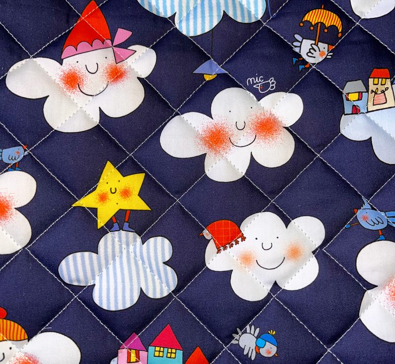 Tessuto trapuntatura inferiore e bordino: 100% cotone organico