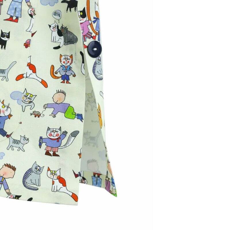 Grembiule da maestra a poncho, con spacchi laterali con chiusura a bottoni e grande tasca sul davanti