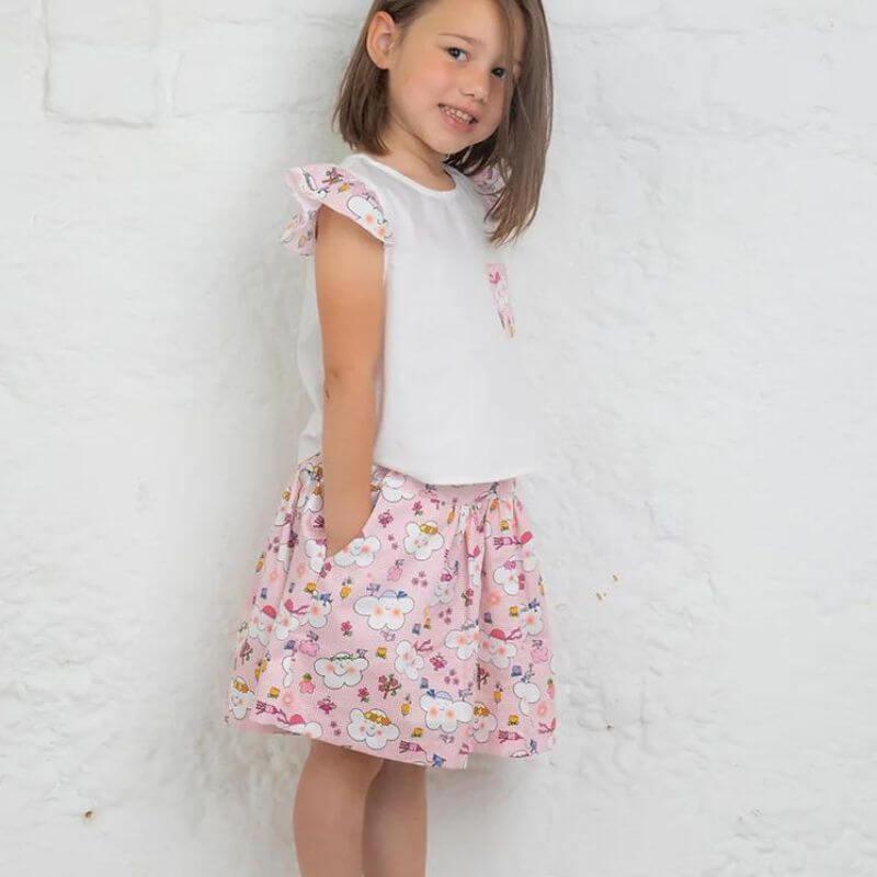 Gonna a balze con elastico in vita e tasche laterali