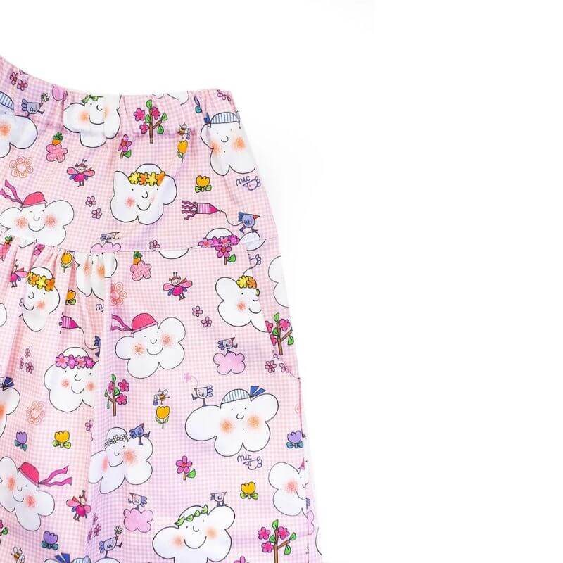 Questo tessuto contiene i disegni di Nicoletta Costa del libro Primavera con la Nuvola Olga e quelli del gioco La Nuvola Olga e i colori della Primavera