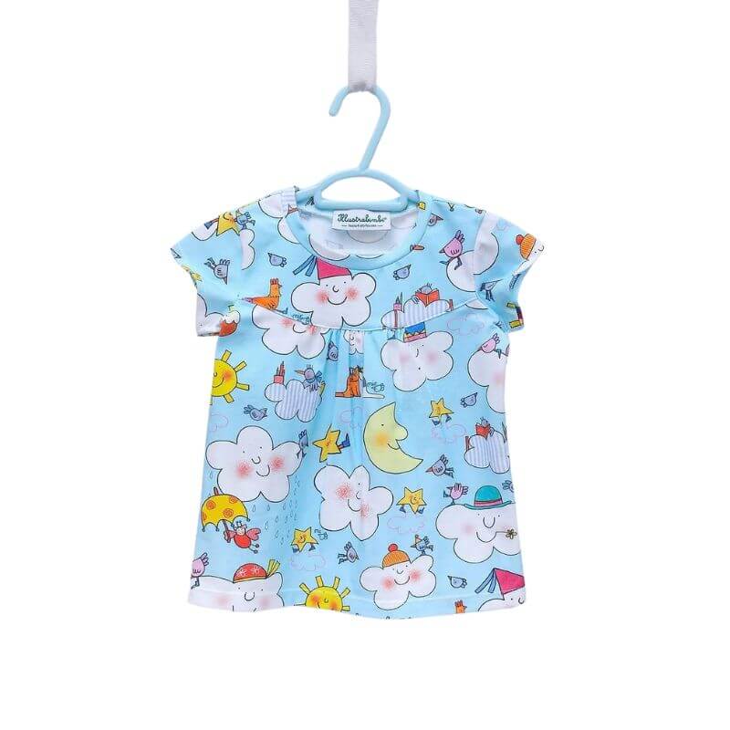 Maglietta a mezza manica con scollo tondo e carré arricciato sul davanti.