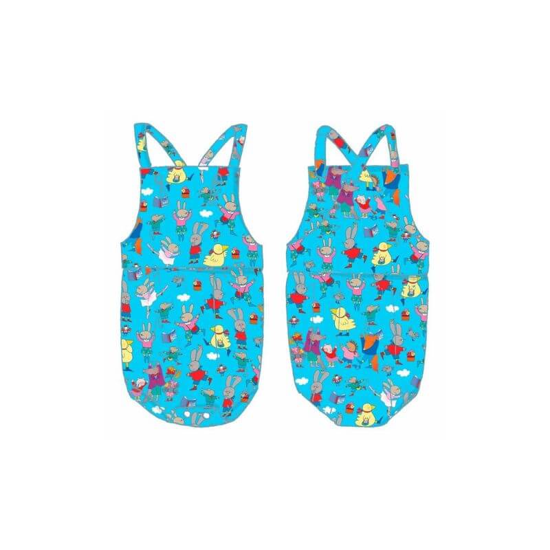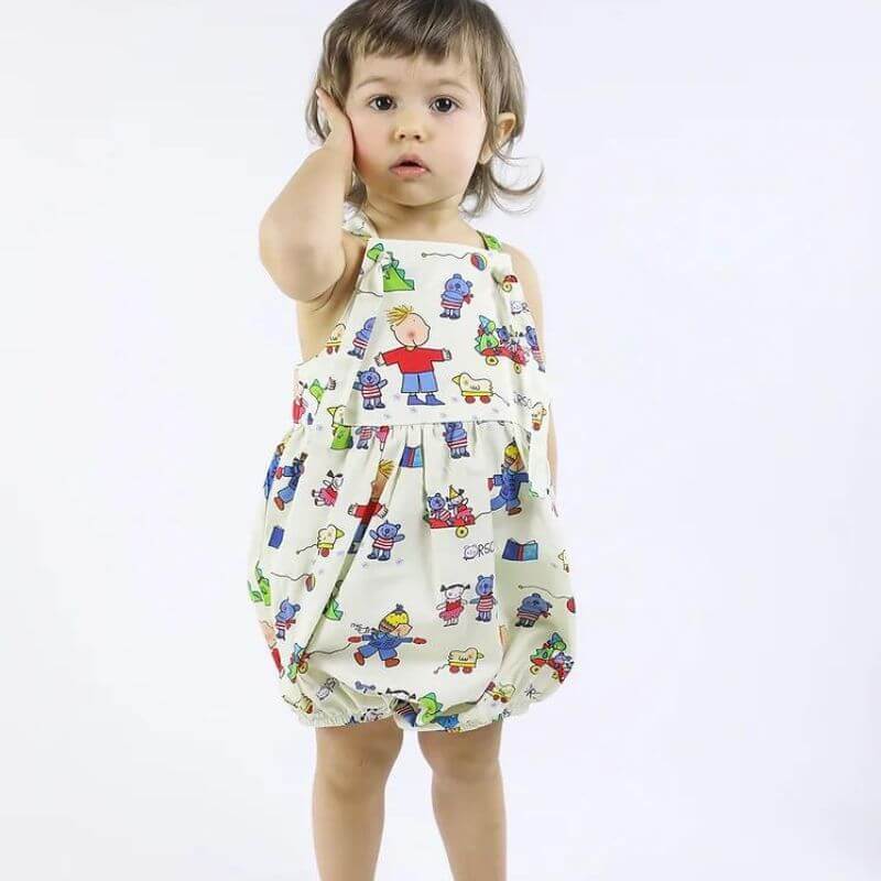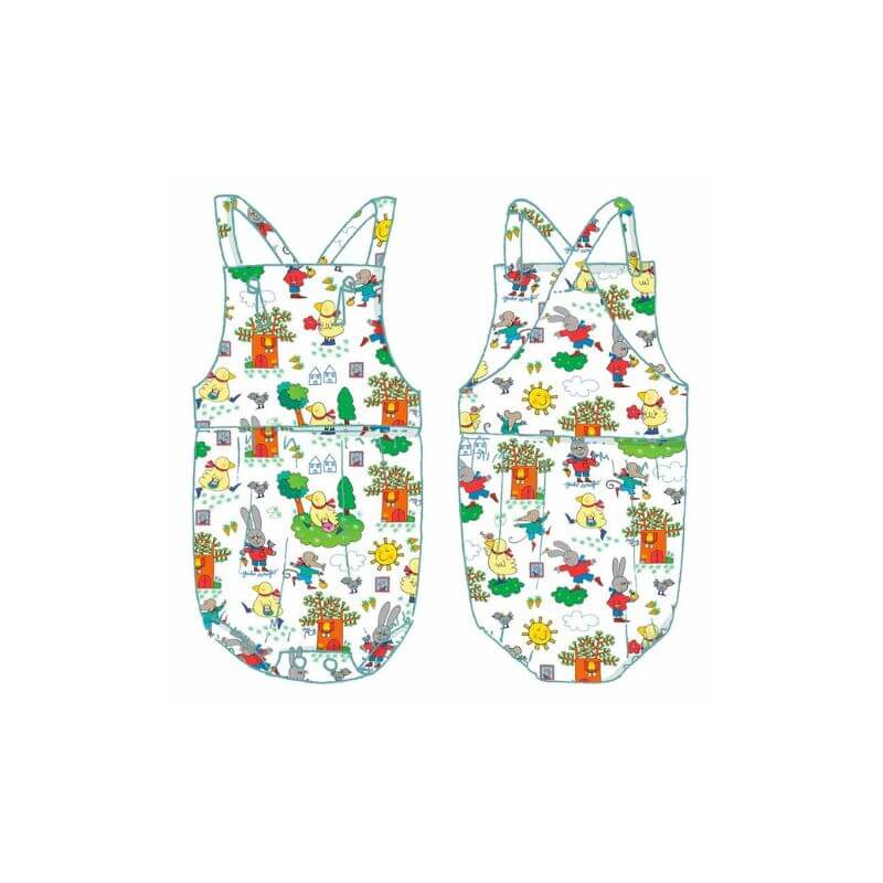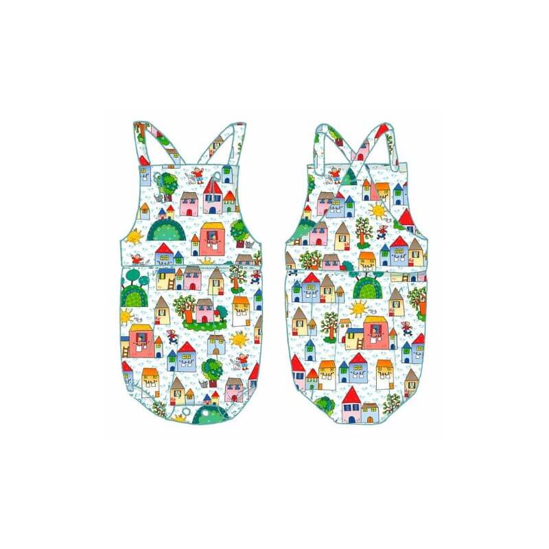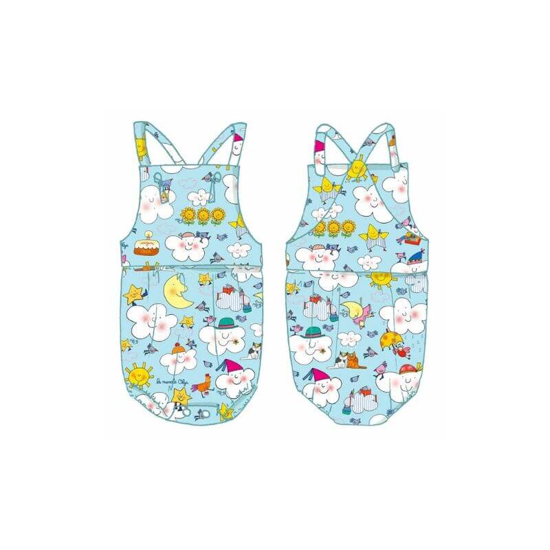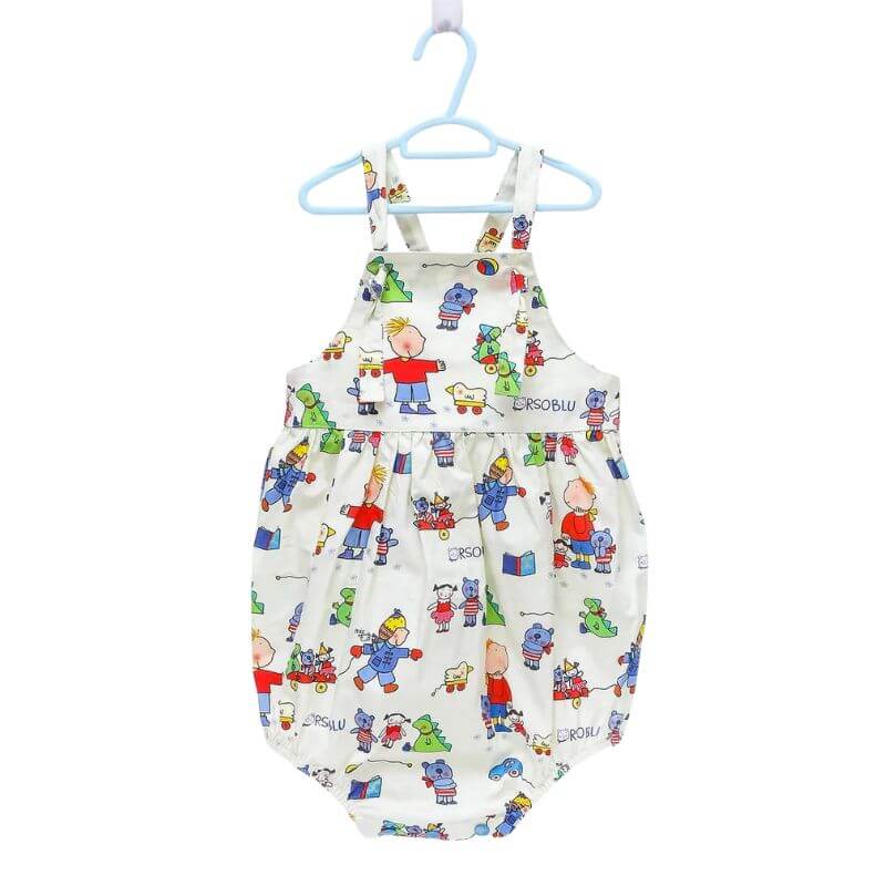 Pagliaccetto con bretelle regolabili con asola. Chiusura con automatici sul cavallo.