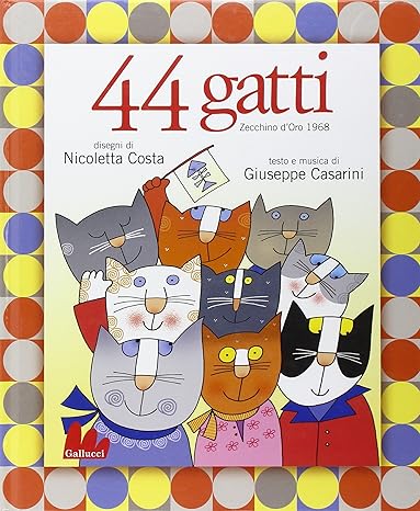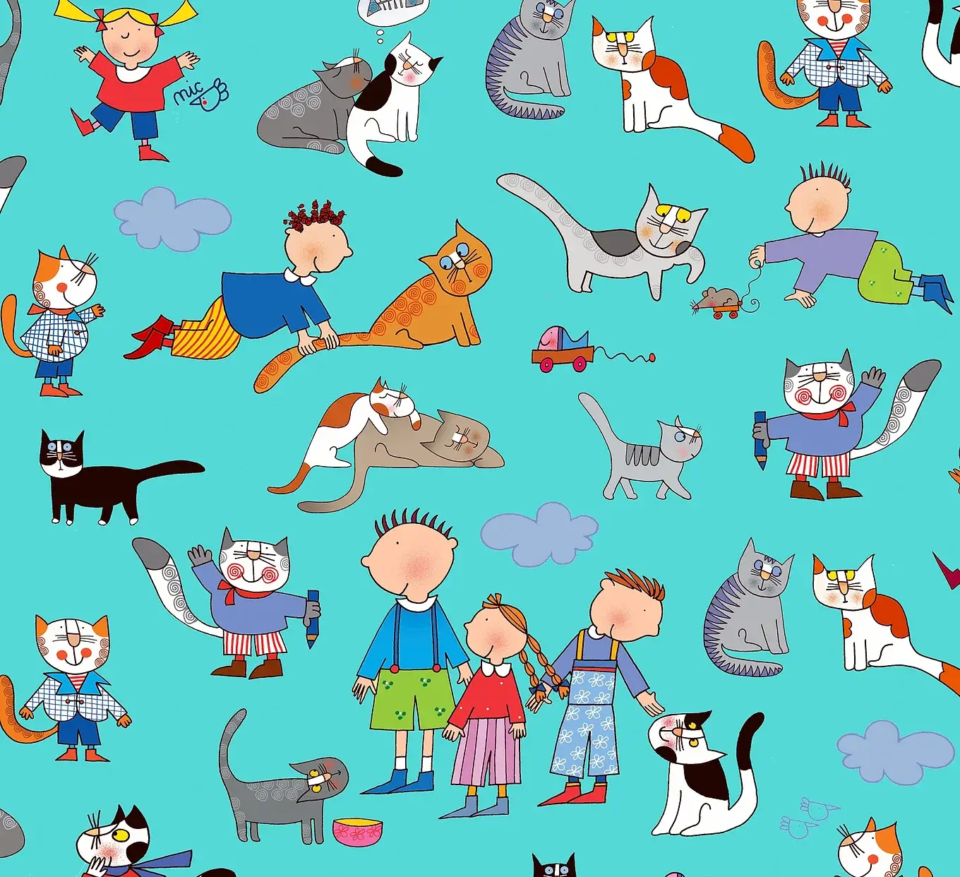 I bimbi e i gatti su questo tessuto sono quelli del libro di Gallucci, con allegata la famosa canzone di Giuseppe Casarini vincitrice dello Zecchino d’Oro 1968.
