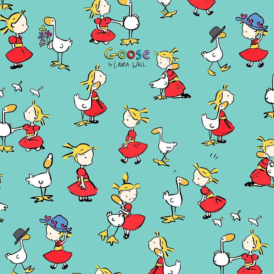 Il tessuto riporta i disegni Goose e dell’amichetta Sophie, di Laura Wall